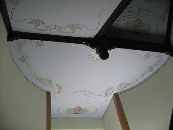 Das sind alle Arbeiten, die (nicht nur) in denkmalgeschützten Gebäuden innen und außen anfallen und etwas mit Farbe und Pinsel zu tun haben, angefangen von den (oft arbeits- und schmutzintensiven) Vorarbeiten, die aber sehr wichtig sind auf das zu erreichende Endergebnis (und die ich deshalb ungern meinen Kunden in Eigenleistung überlasse), über Anstricharbeiten (im Innenbereich grundsätzlich nur mit Naturfarben (Definition siehe Link Naturfarben) bis hin zu gestalterischen Arbeiten (Striche, Bänder, Schablonen, Holz- und Marmorimitation etc.)